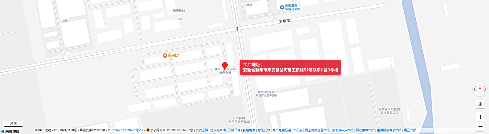 工厂地址:安徽省滁州市来安县岔河镇王桥路51号联东U谷3号楼